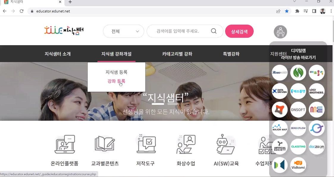 3. 지식샘터 강의 등록 신청