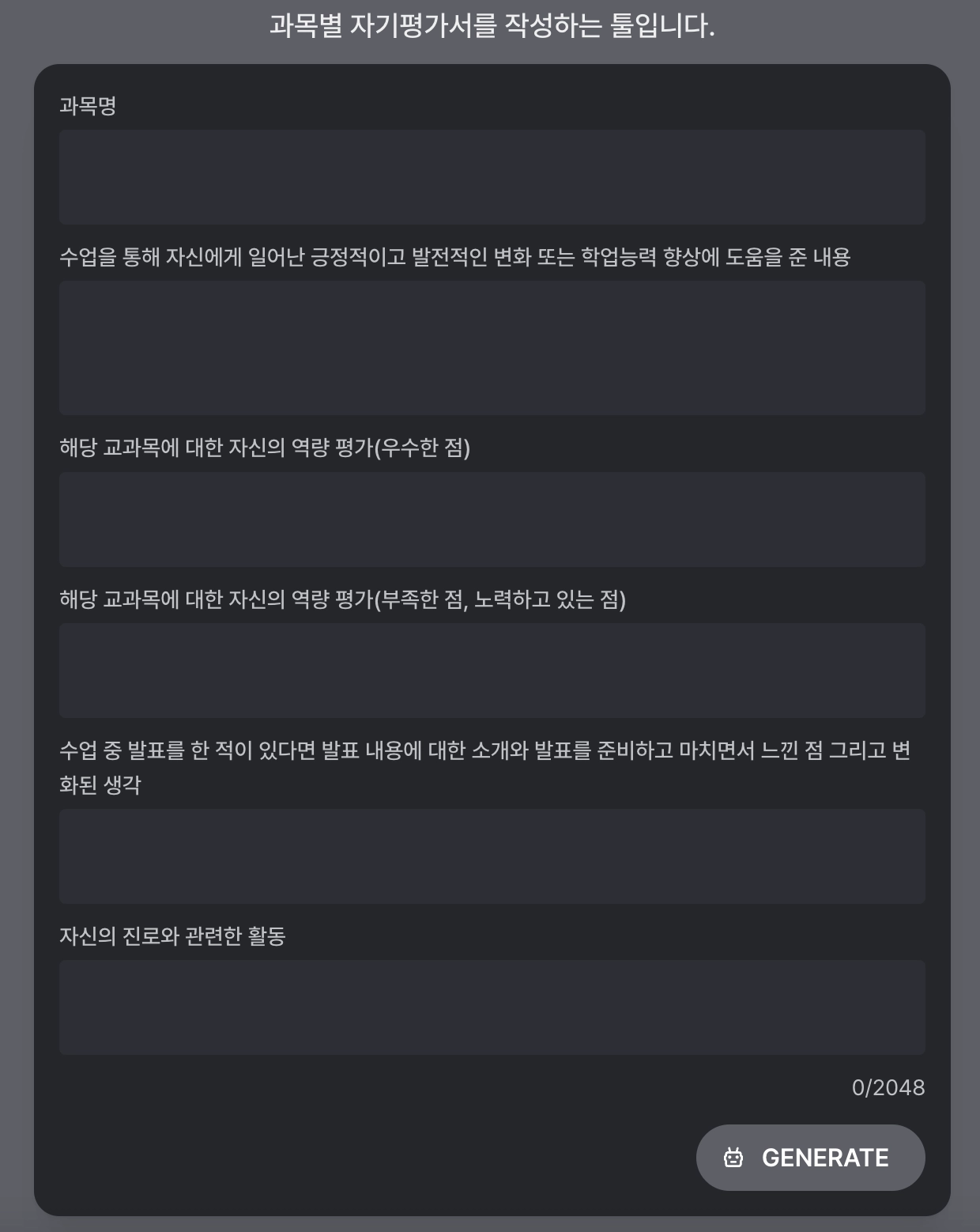 [툴] 과목별 자기평가서 작성하는 툴