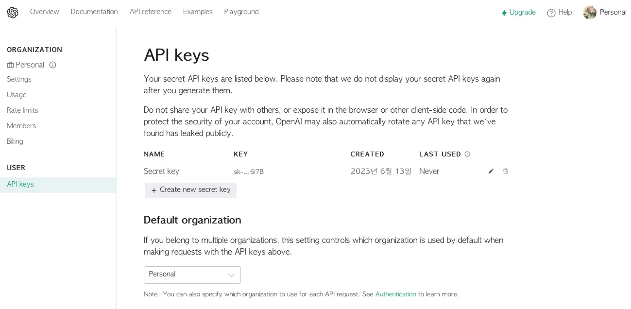 ChatGPT API Key 생성 방법