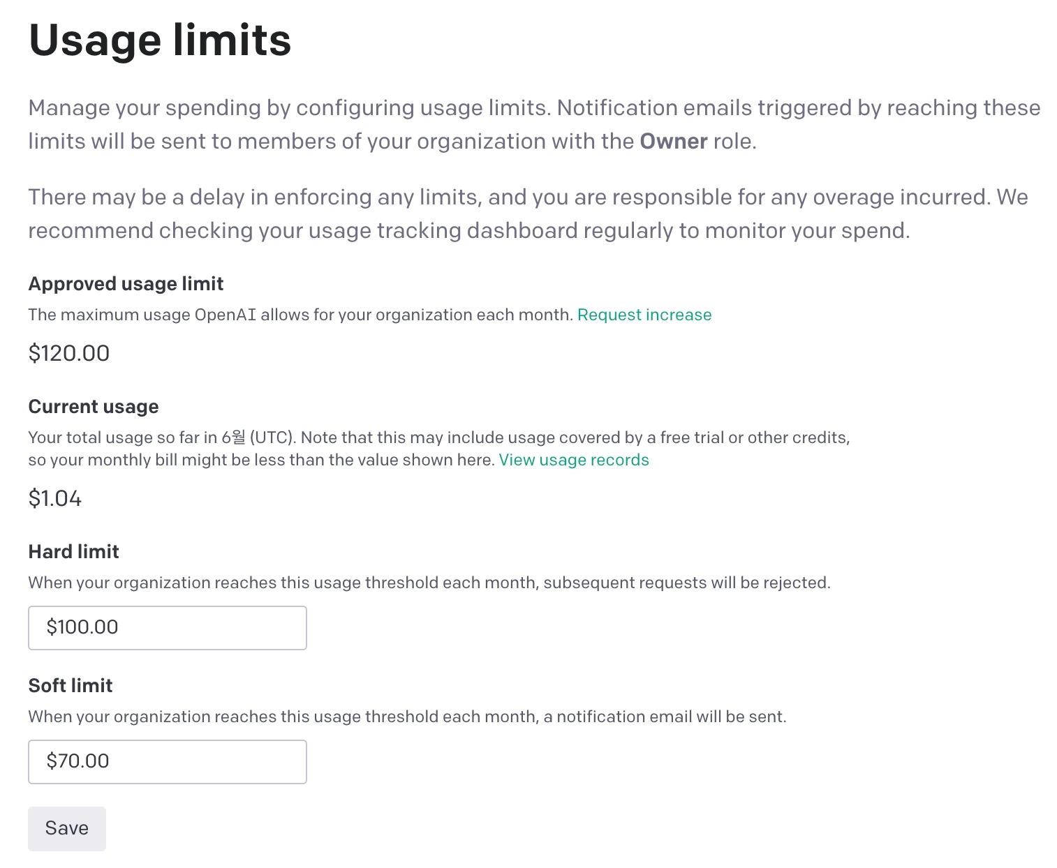 김프로 강사의 현재 API 이용 현황