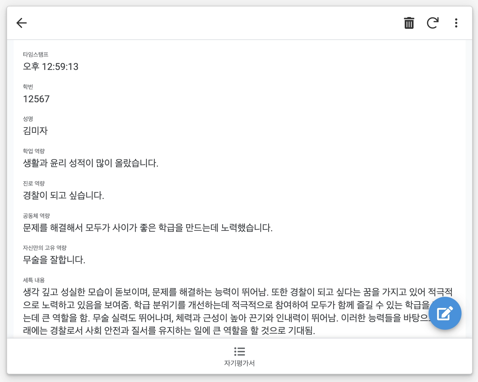 행동특성 및 종합의견 작성 실습