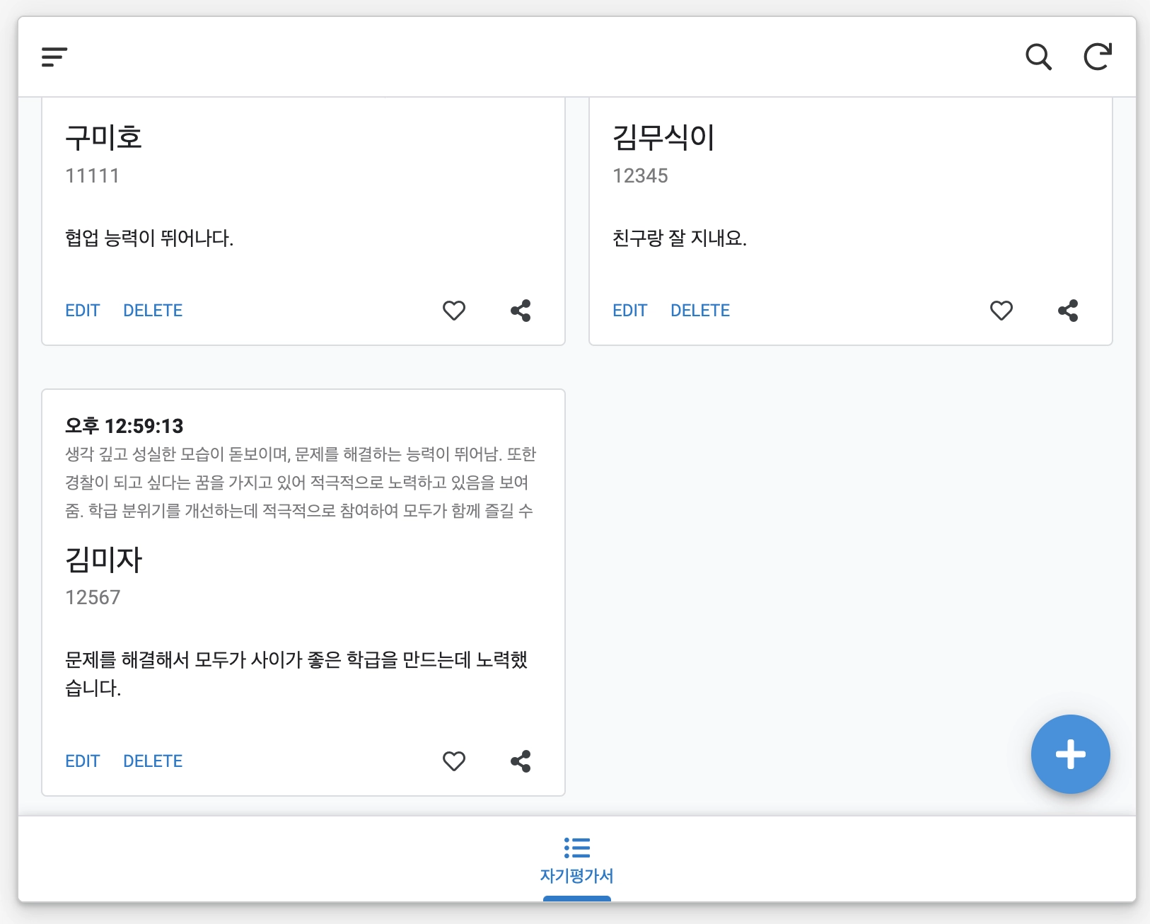 노션에서 구글 시트로 바로 입력할 수 있지만 학생들 자기 평가서 자료 수합은 구글 시트가 편하므로 시도하지 않음