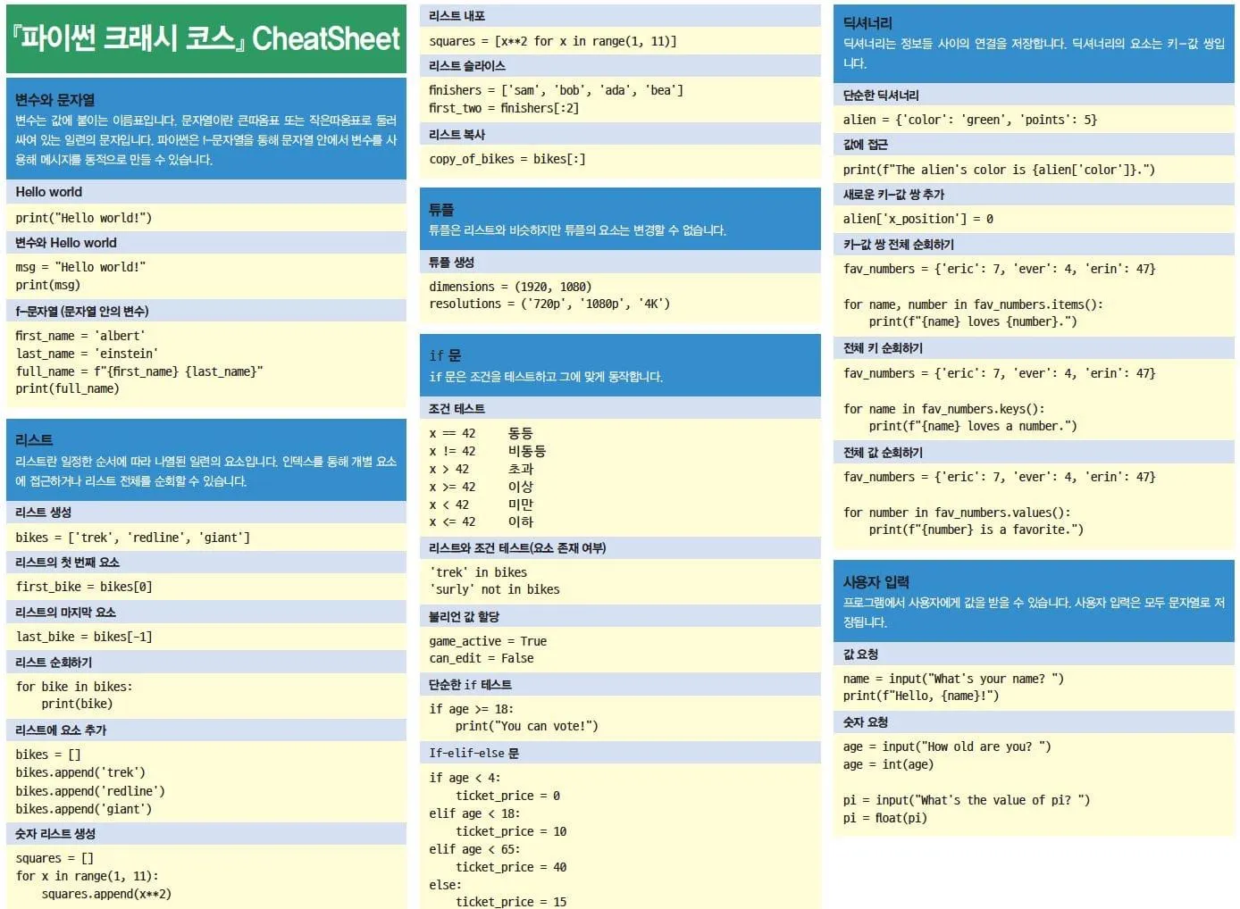 파이썬 크래시 코스 CheatSheet